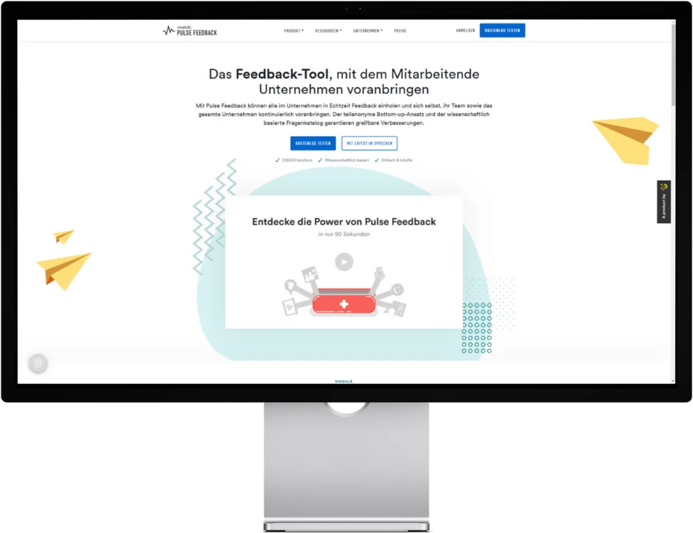 Die Feedback-Software Pulse Feedback aus dem Hause Creaholic erlaubt es Unternehmen, Teams und Einzelpersonen in Echtzeit Feedback einholen und sich so kontinuierlich zu verbessern. Damit das Team hinter Pulse Feedback auch in der organischen Suche als Expert:innen wahrgenommen wird, war ein umfangreicher Wissensbereich auf der Webseite die Lösung.