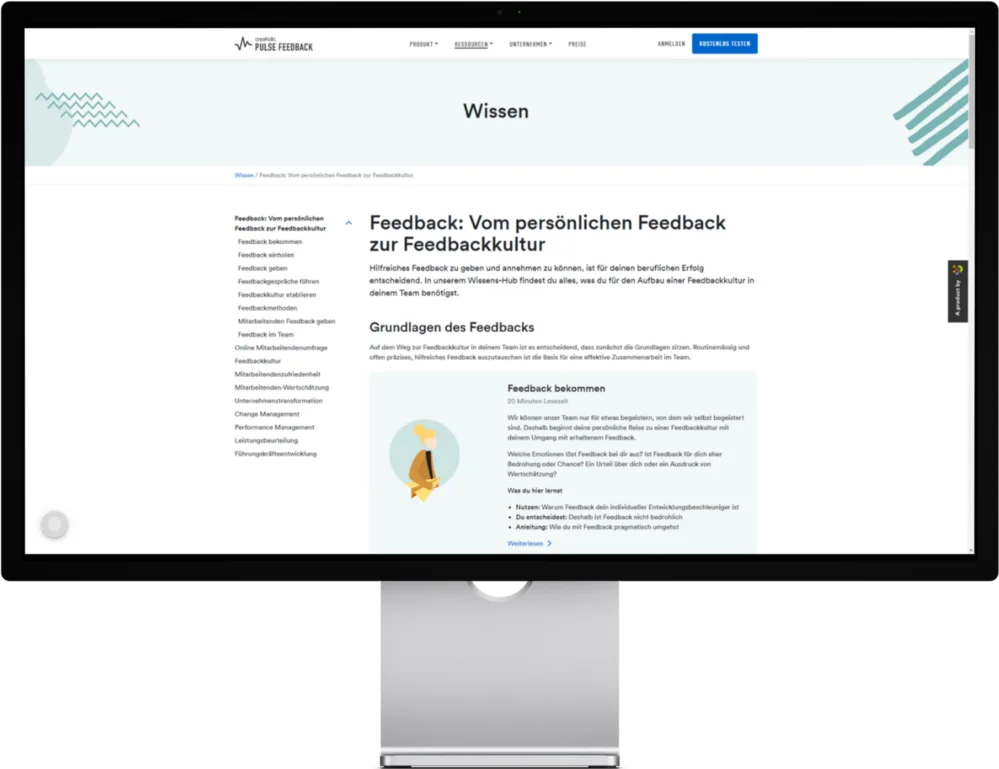 Unser Beitrag dazu war ein Wissensbereich, der genau diese Themen für Mitarbeitende und Führungskräfte verständlich aufschlüsselt und die Webseite von Pulse Feedback so in die organische Sichtbarkeit brachte.